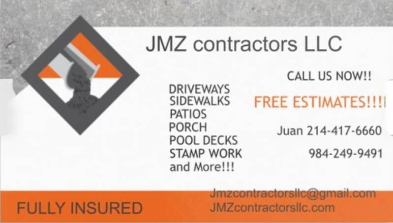 ¡Contáctenos hoy para obtener un presupuesto gratuito y comenzar su proyecto de concreto con JMZ CONTRACTORS LLC en Raleigh , North Carolina!